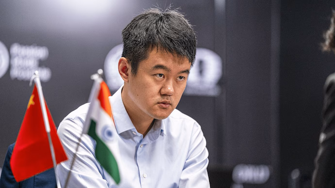 Ding Liren subito dopo aver vinto il Mondiale e subito prima di iniziare quello dove ha perso il titolo